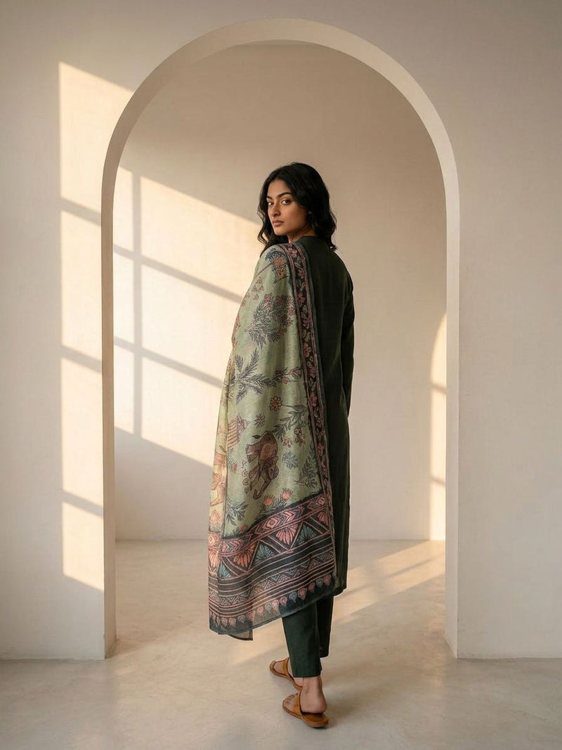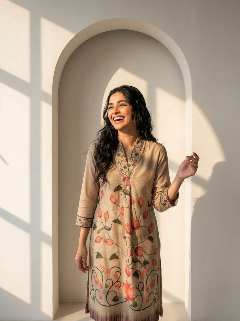 Aanishka V-Neck Kalamkari Beauty Suit Set