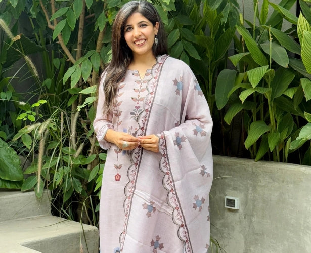 Kylie Print Detailed Pink Pure Linen Co-ord Set