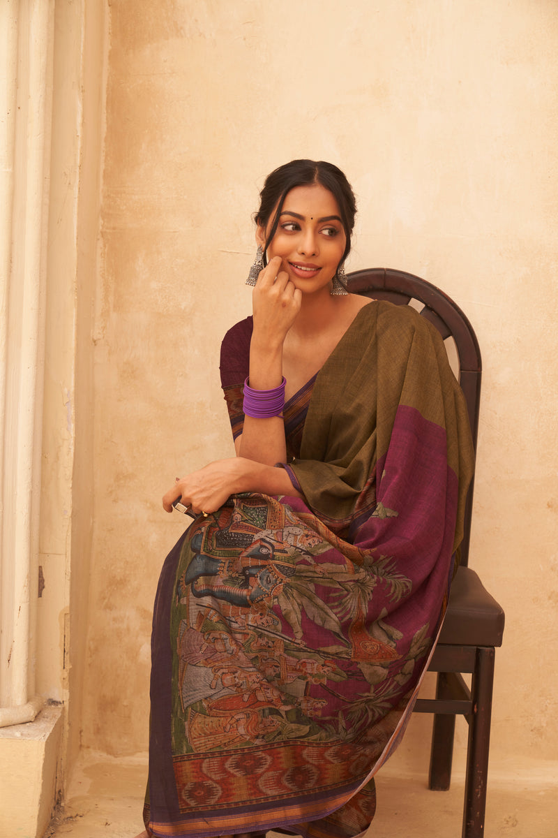 Beautiful Raas Leela Kalamkari Saree