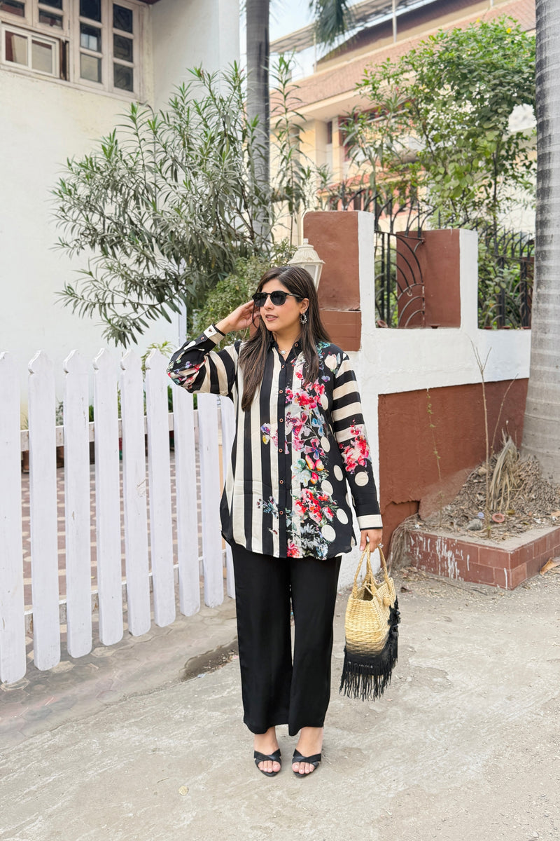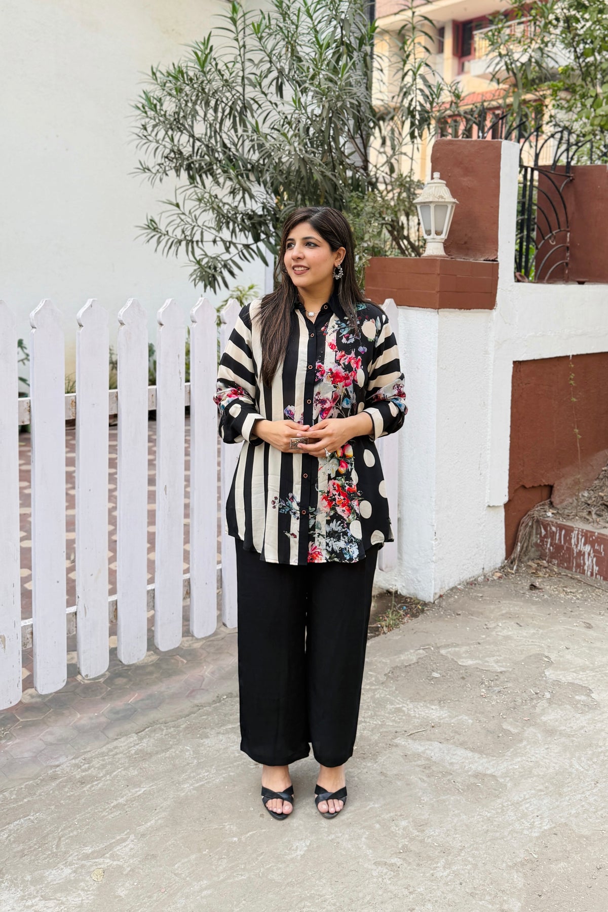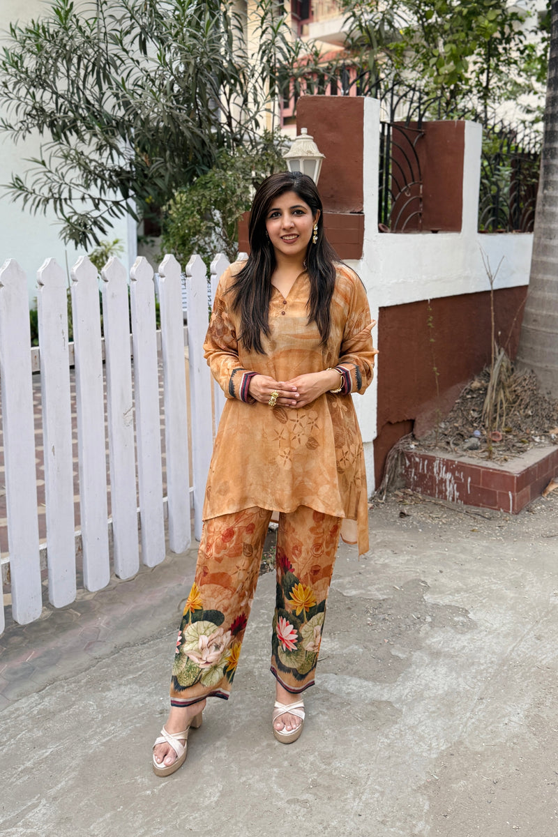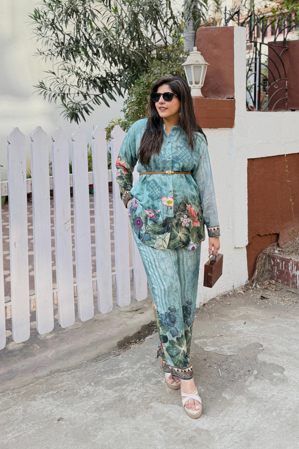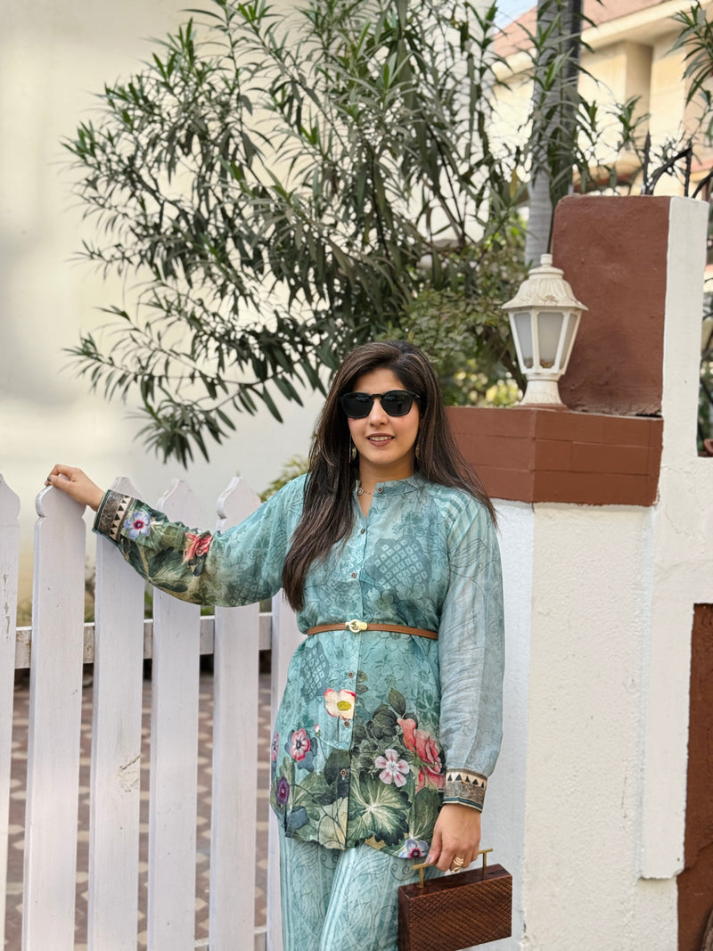 Blue Floral Side Knot With Motif Pant Co-ord set