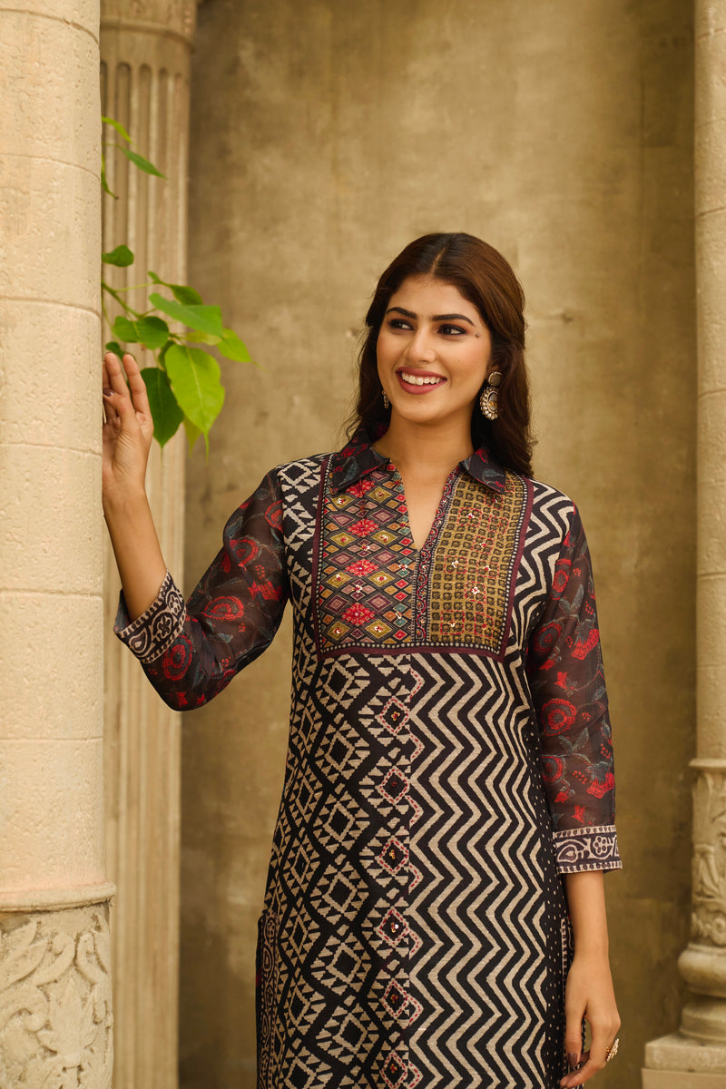 Meera Kalamkari Collar Kurta Set Sale