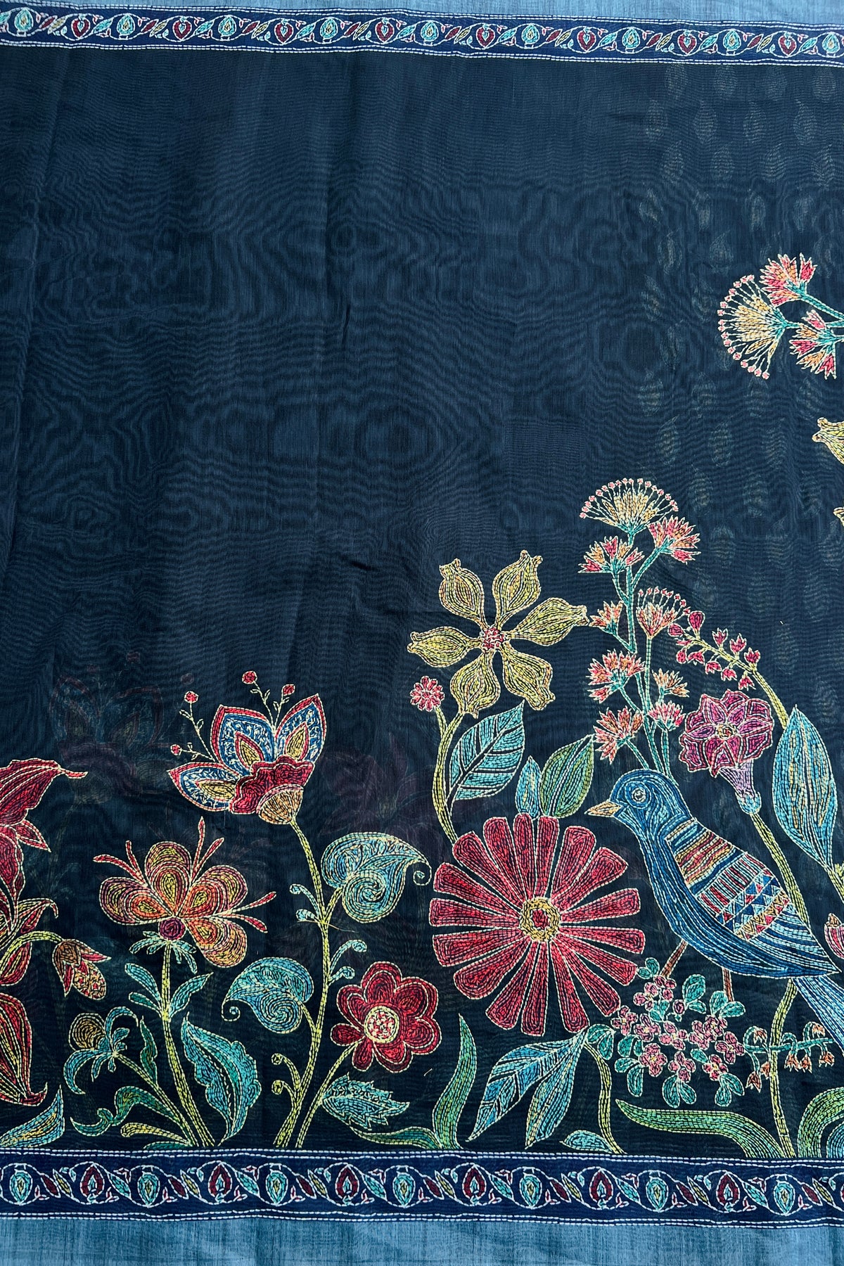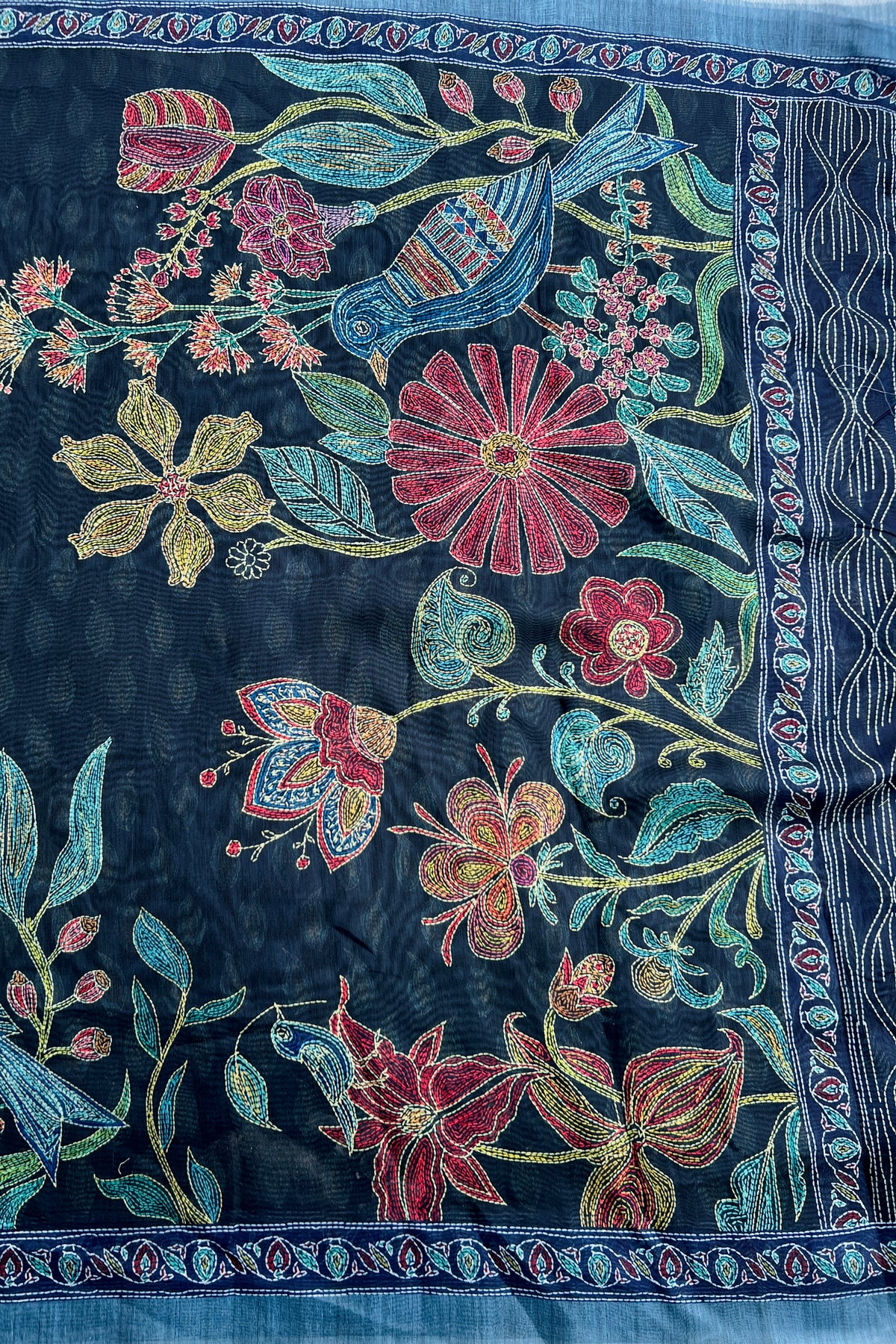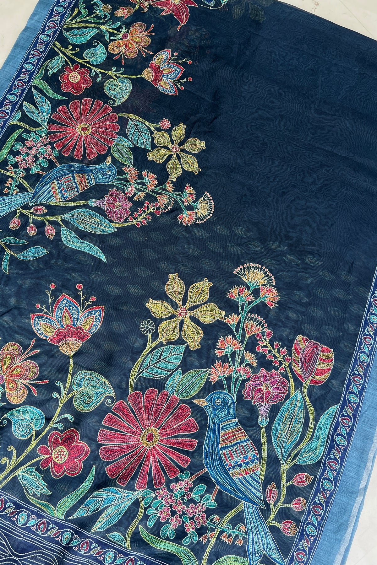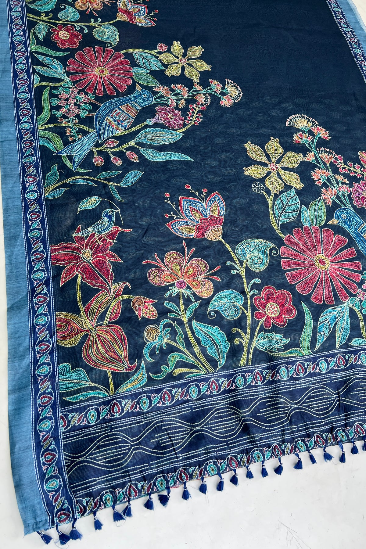 Elevate your festive wardrobe with this vibrant digitally printed saree, adorned with intricate floral and bird motifs. The pallu unfolds like a canvas of nature, offering a striking blend of color and artistic detail. A perfect choice for cultural events and celebrations that call for statement-making elegance.