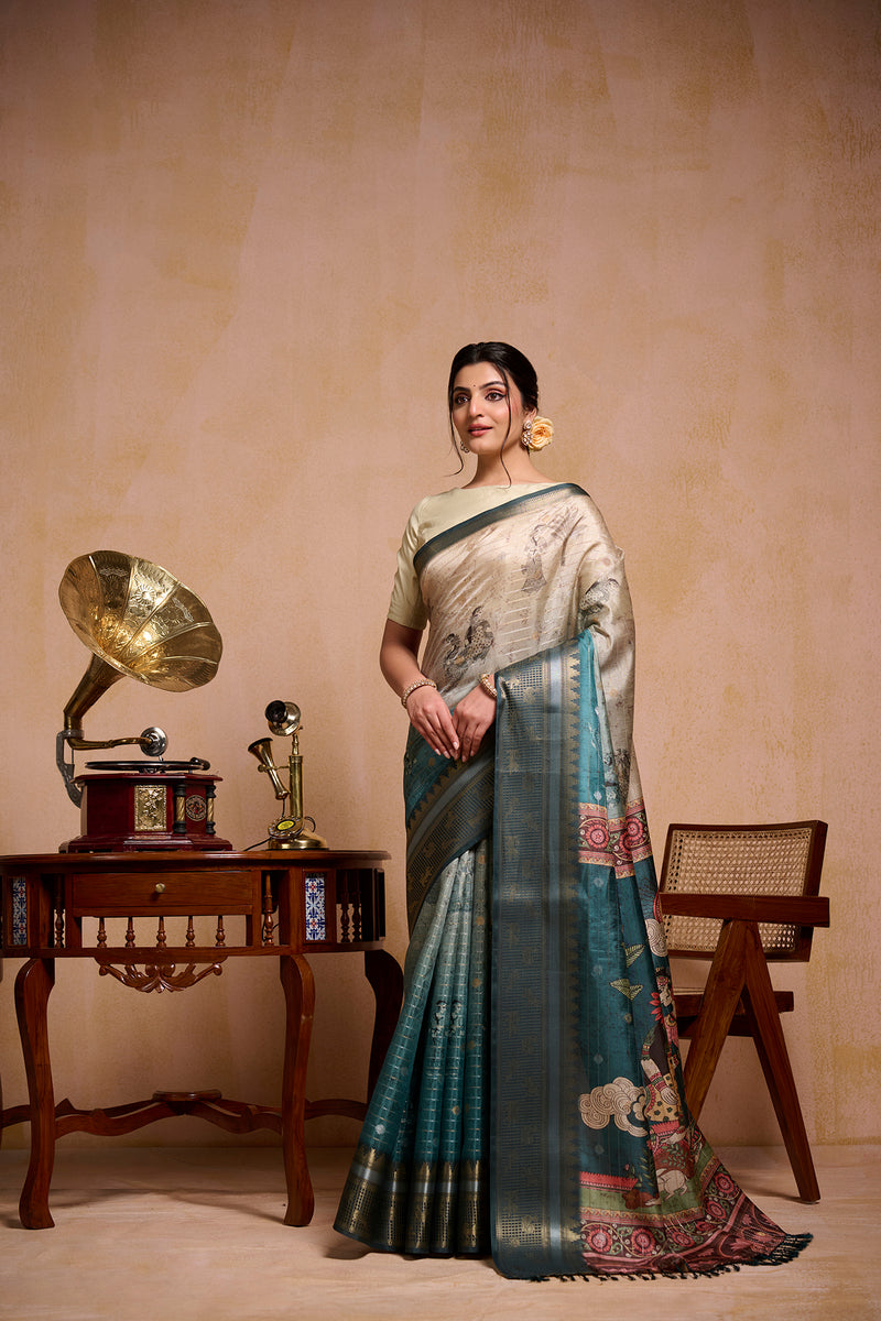 Teal Florals Saree