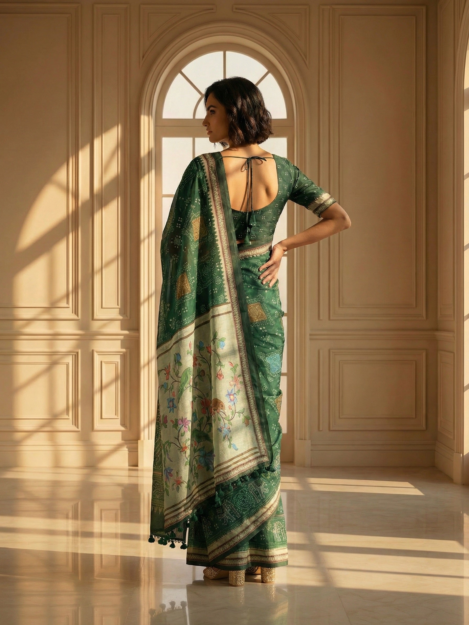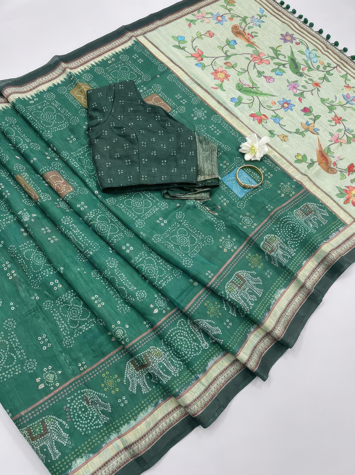 Green Bandhani Saree