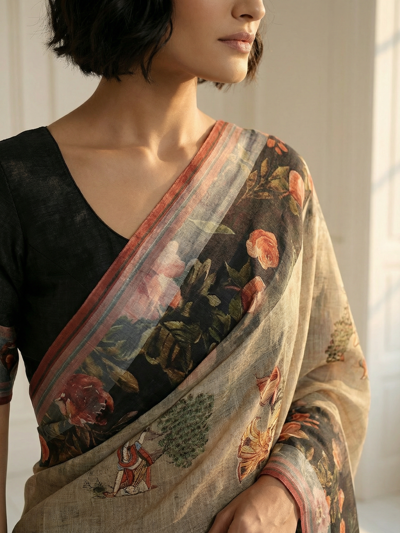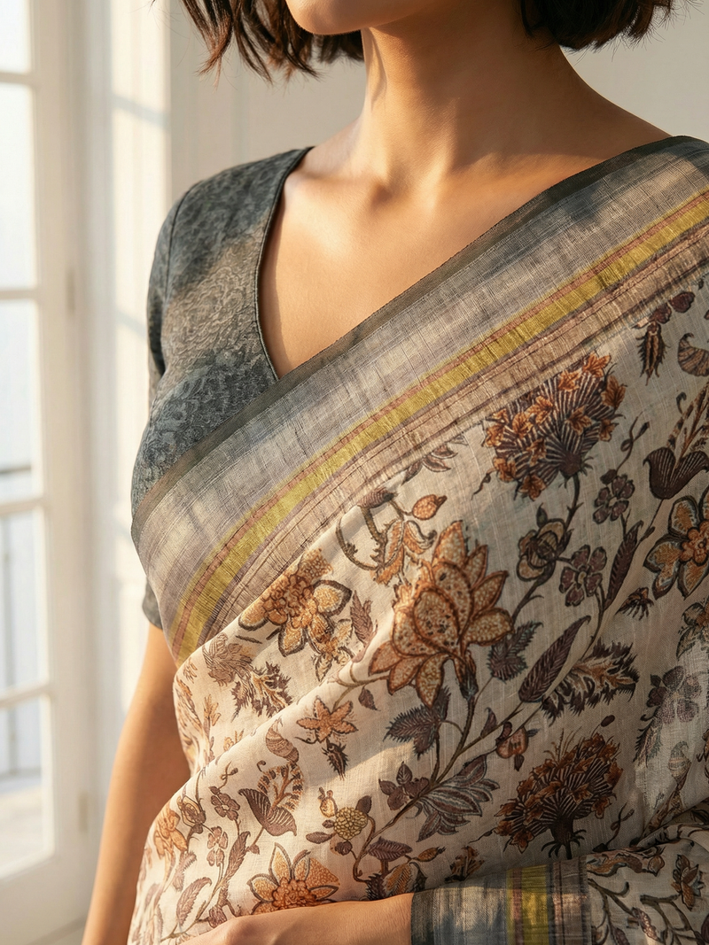 Blossom with the elegance of Floral Printed Sarees by Ekana Label. The printed sarees are crafted with vibrant leaves and petal patterns, adorning you with the charm of florals. Explore floral designer sarees online available in a wide range to get dressed in the timeless ethnicity.
