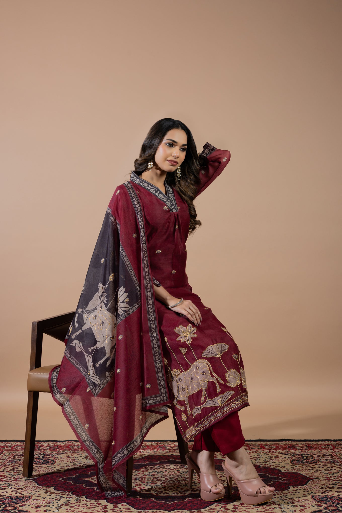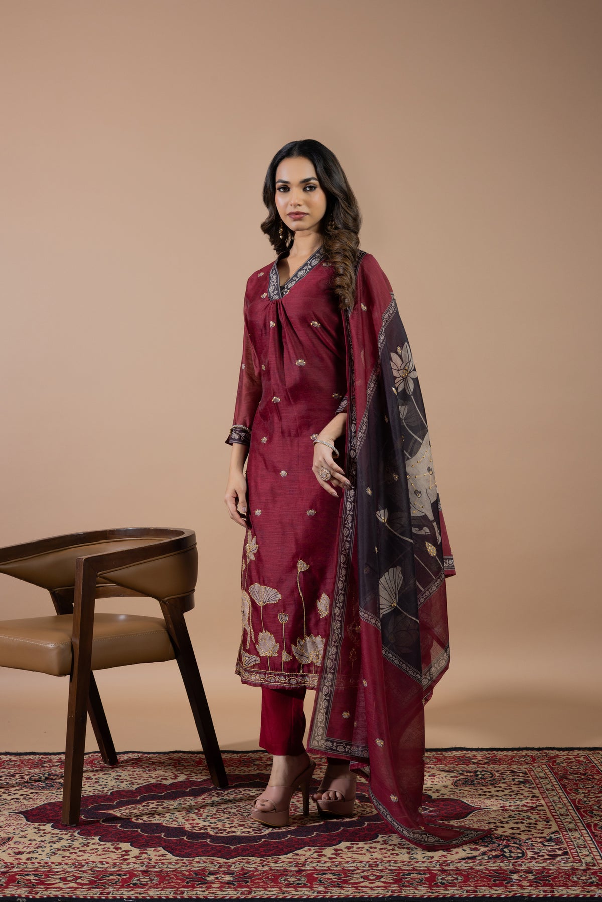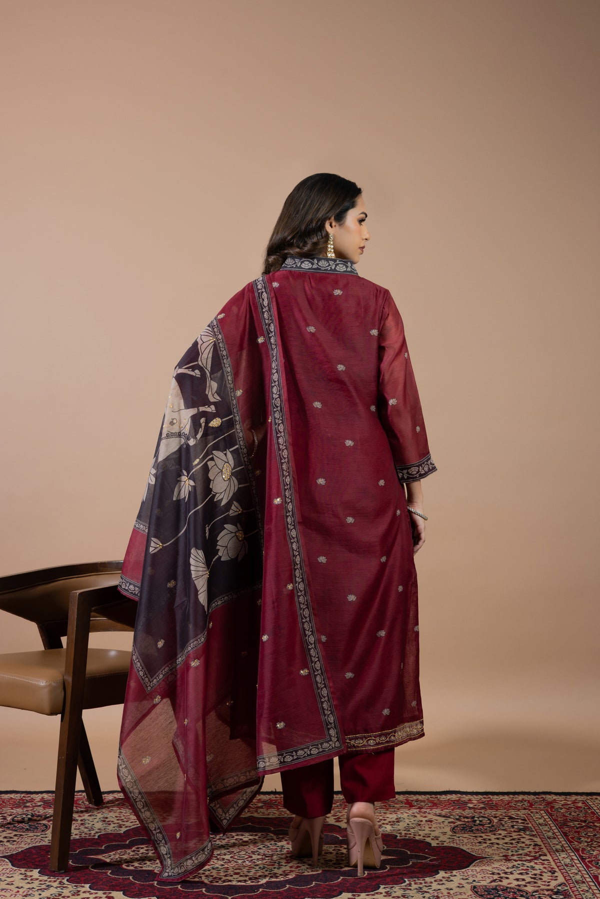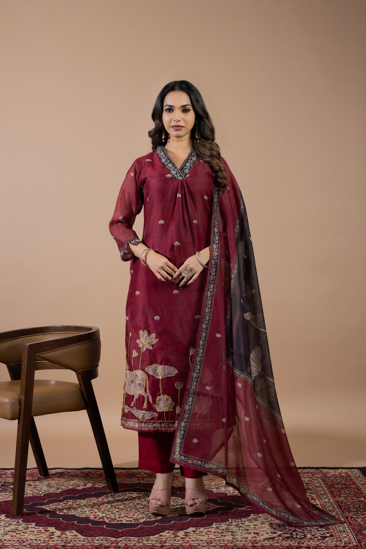 The dupatta stands out with artistic prints and fine craftsmanship, giving it a unique charm.
