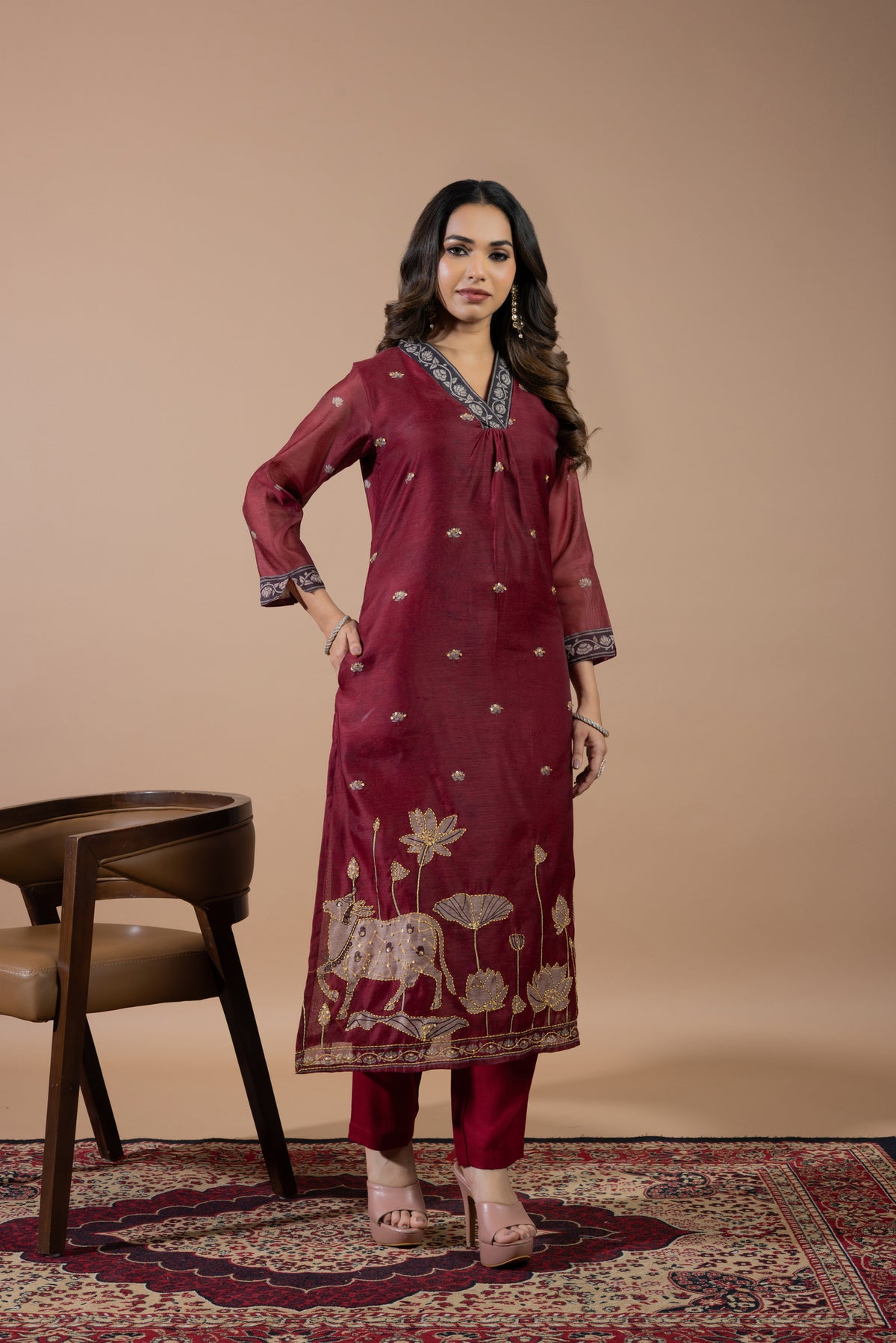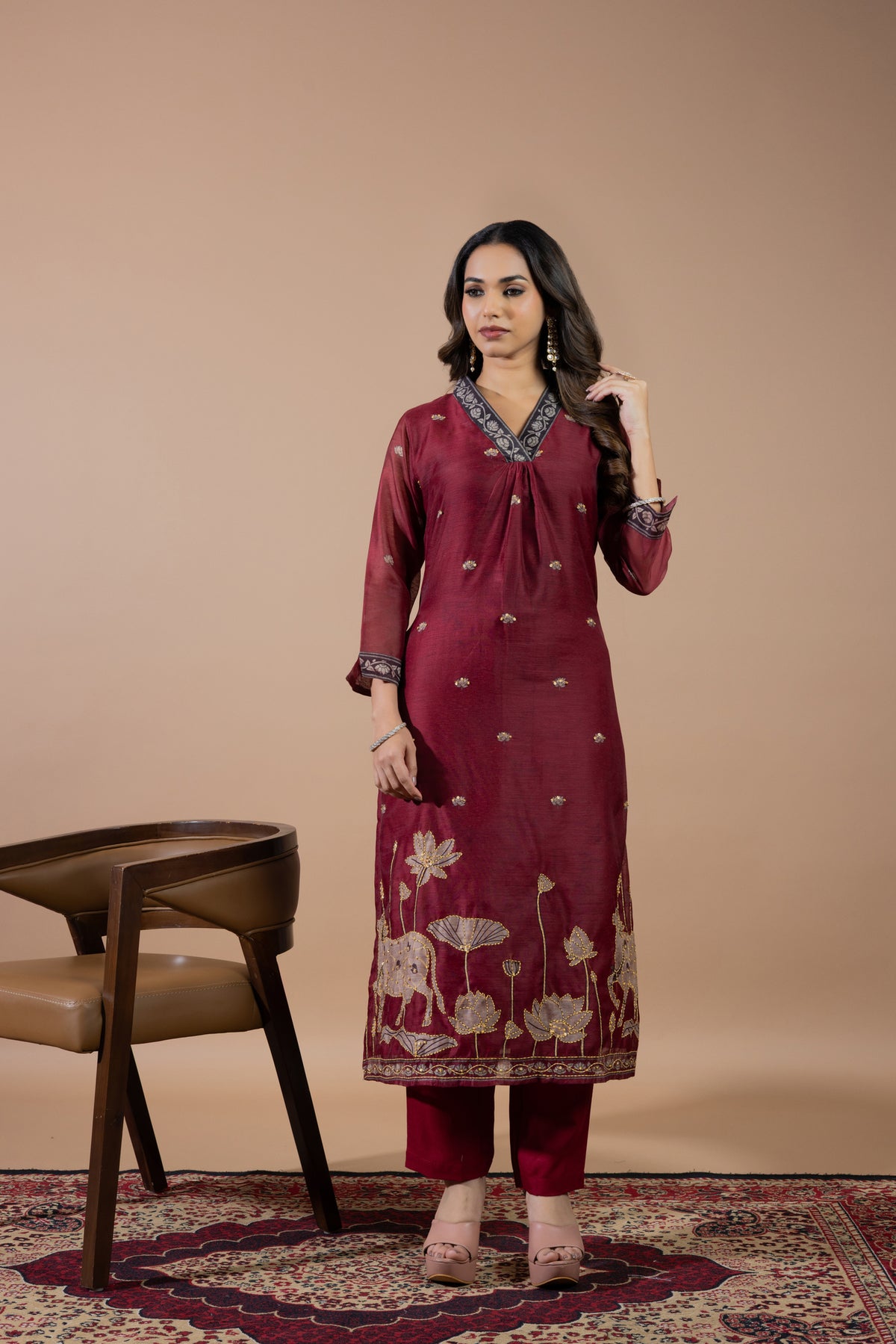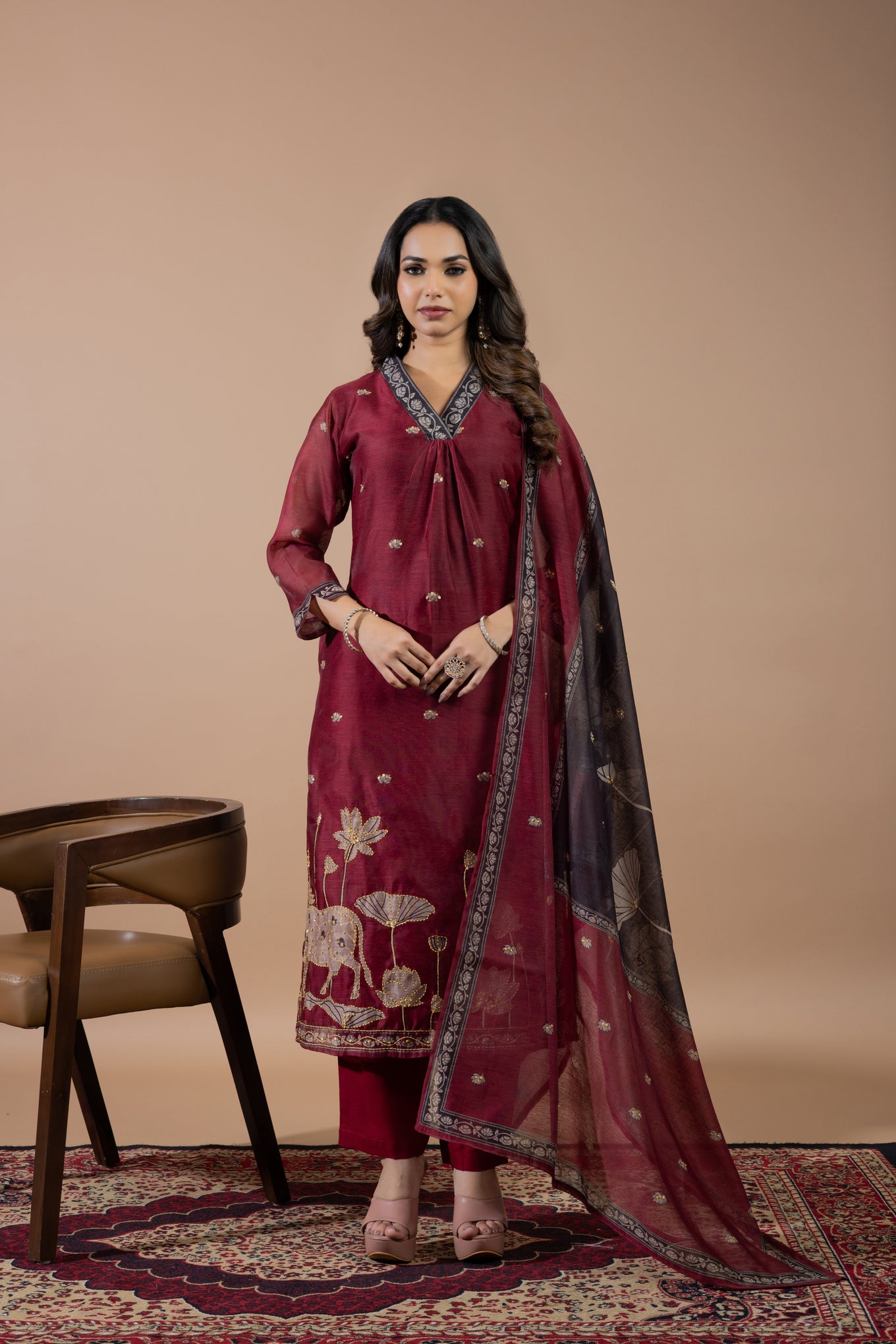 Graceful suit set with delicate handwork that adds a rich and refined feel.