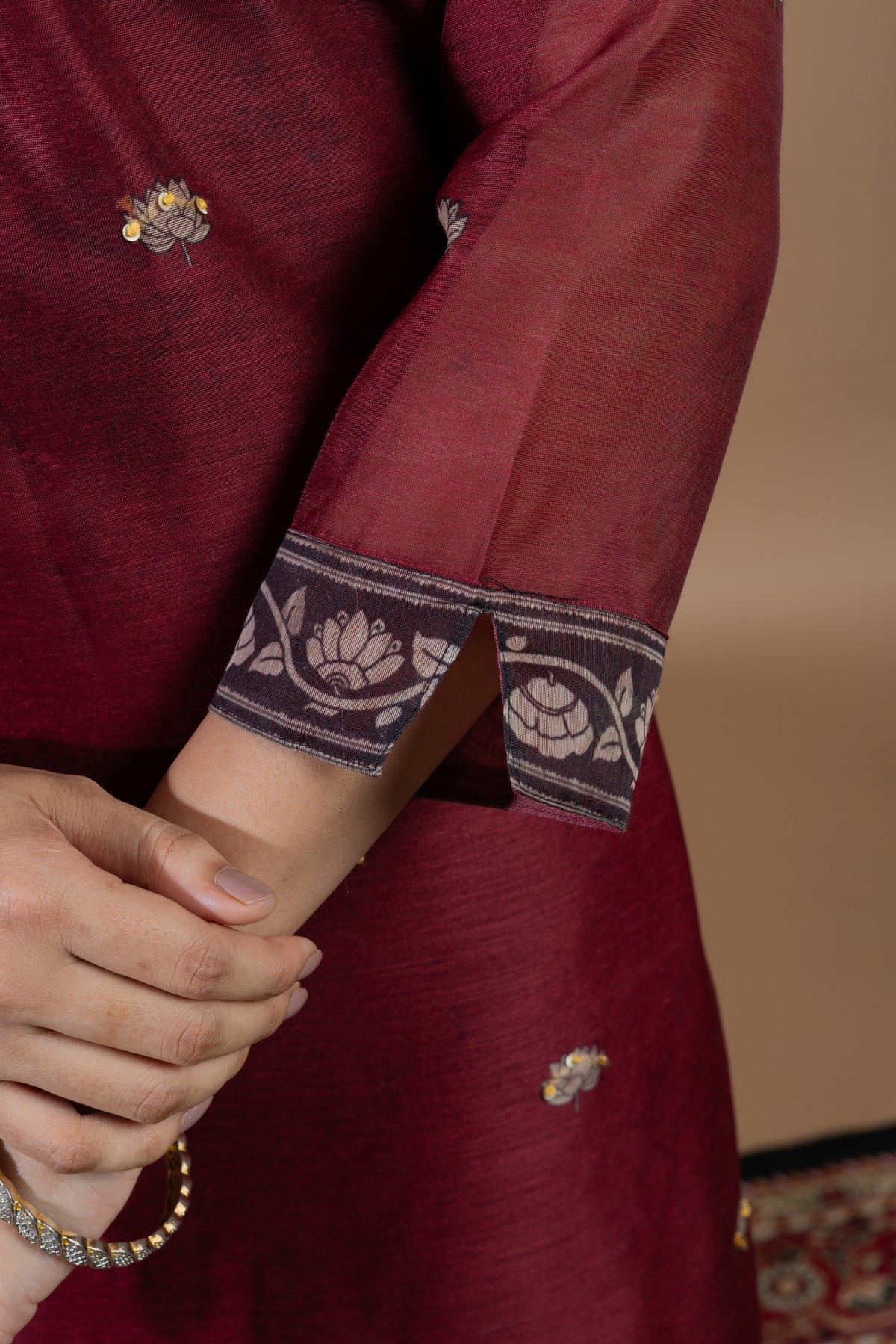 Fabric details: Cotton Silk Kurta with Pure Mul Lining & Soft Cotton Slub Pants with Handloom Cotton Silk Handwork Dupatta.