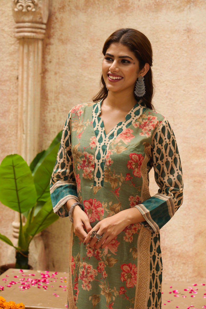 Kia Pista Green Bhagalpuri Set Sale