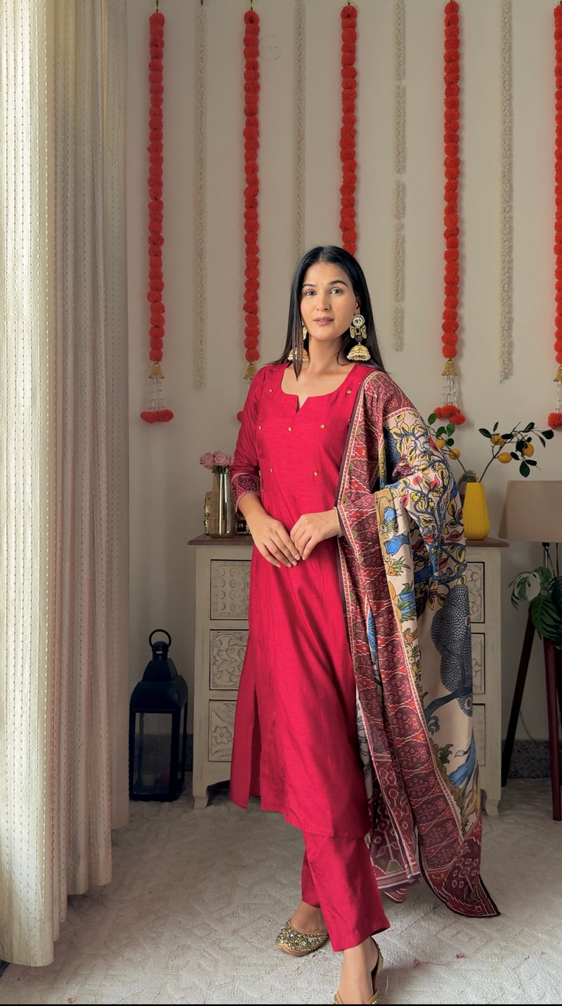 Ranjhana Red Dola Silk Suit Set