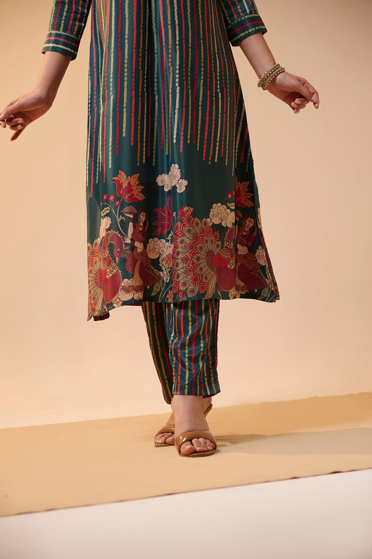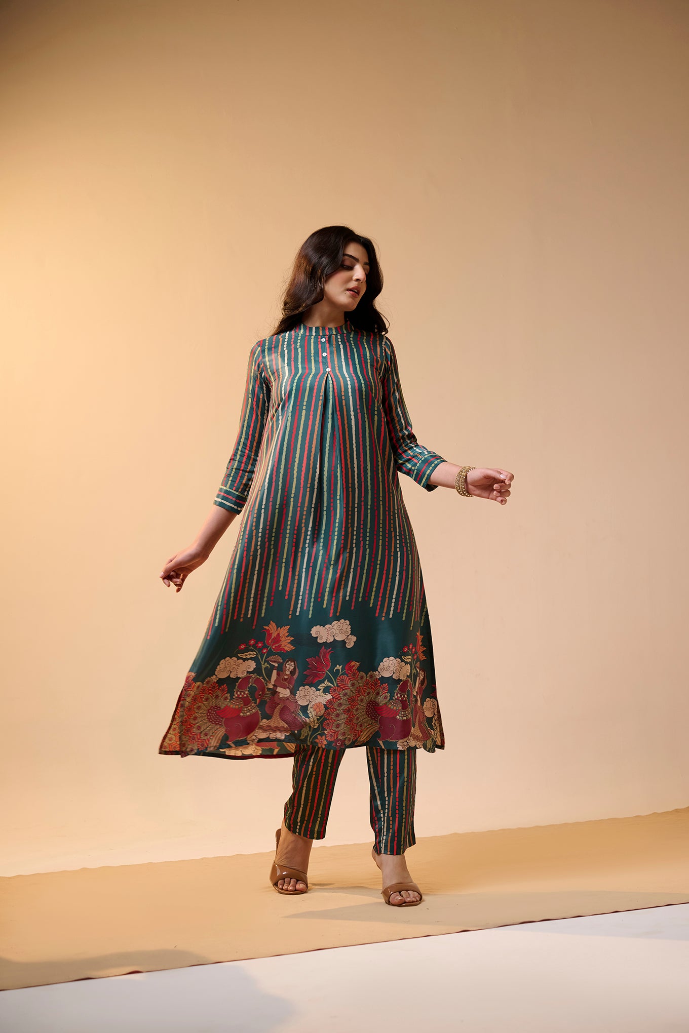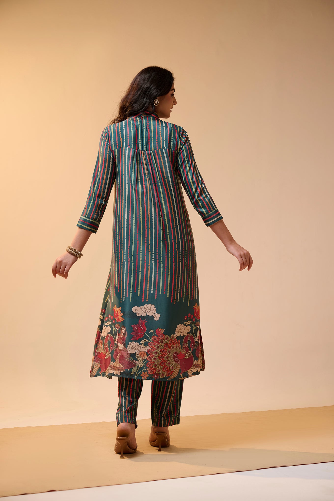 This kurta set comes in soft modal crepe fabric with stylish vertical stripe prints.