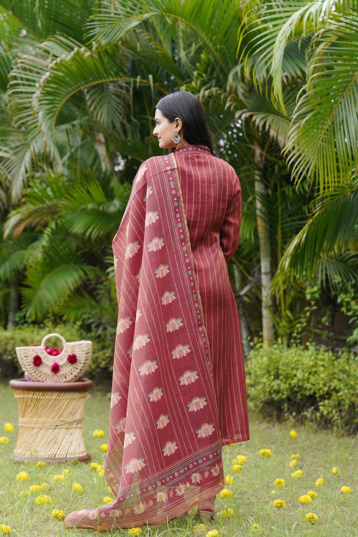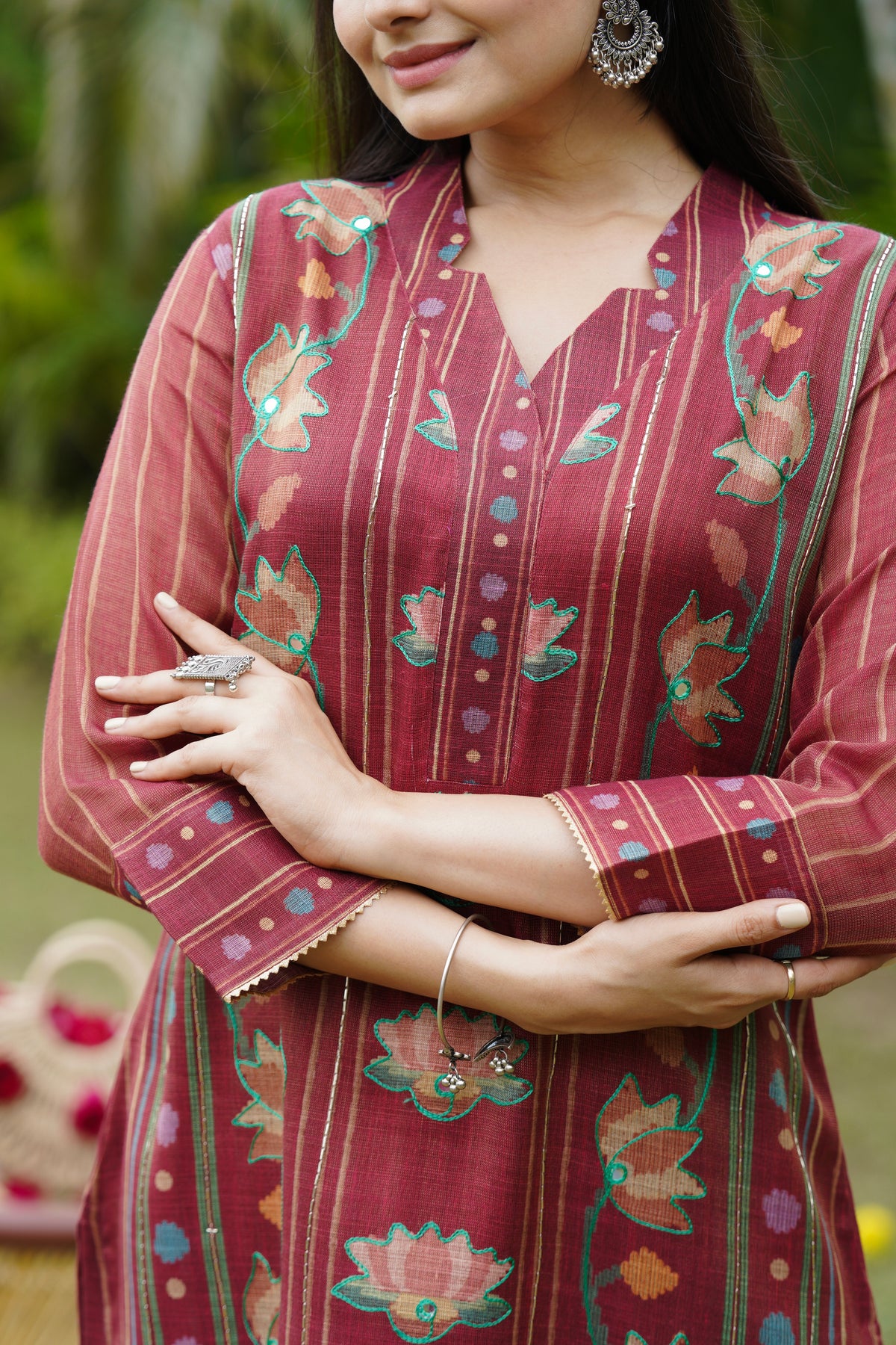 Fabric details : Tissue Linen with handwork details.