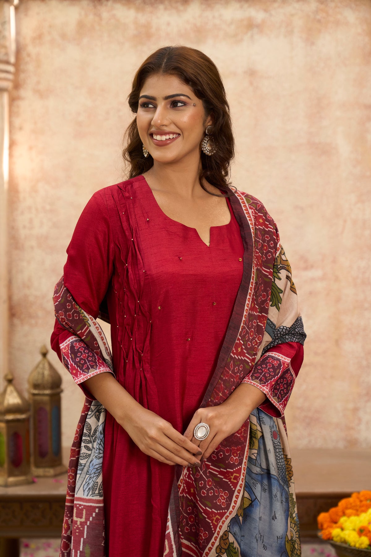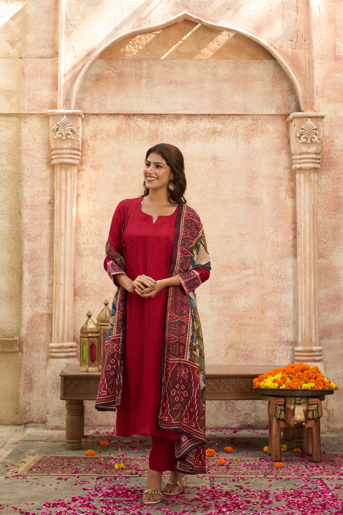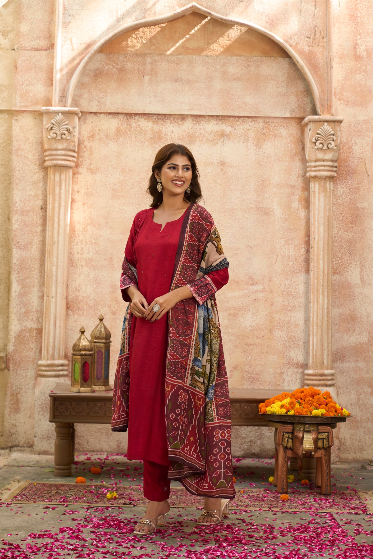 Ranjhana Red Dola Silk Suit Set