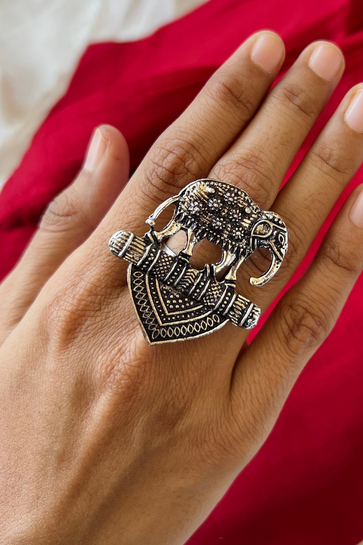 Design: Crafted with intricate detailing and textured artistry, this piece beautifully captures the grandeur of the royal elephant — a timeless emblem of wisdom, power, and grace. Despite its bold presence, it remains lightweight and comfortable, making it perfect for everyday wear or special occasions.