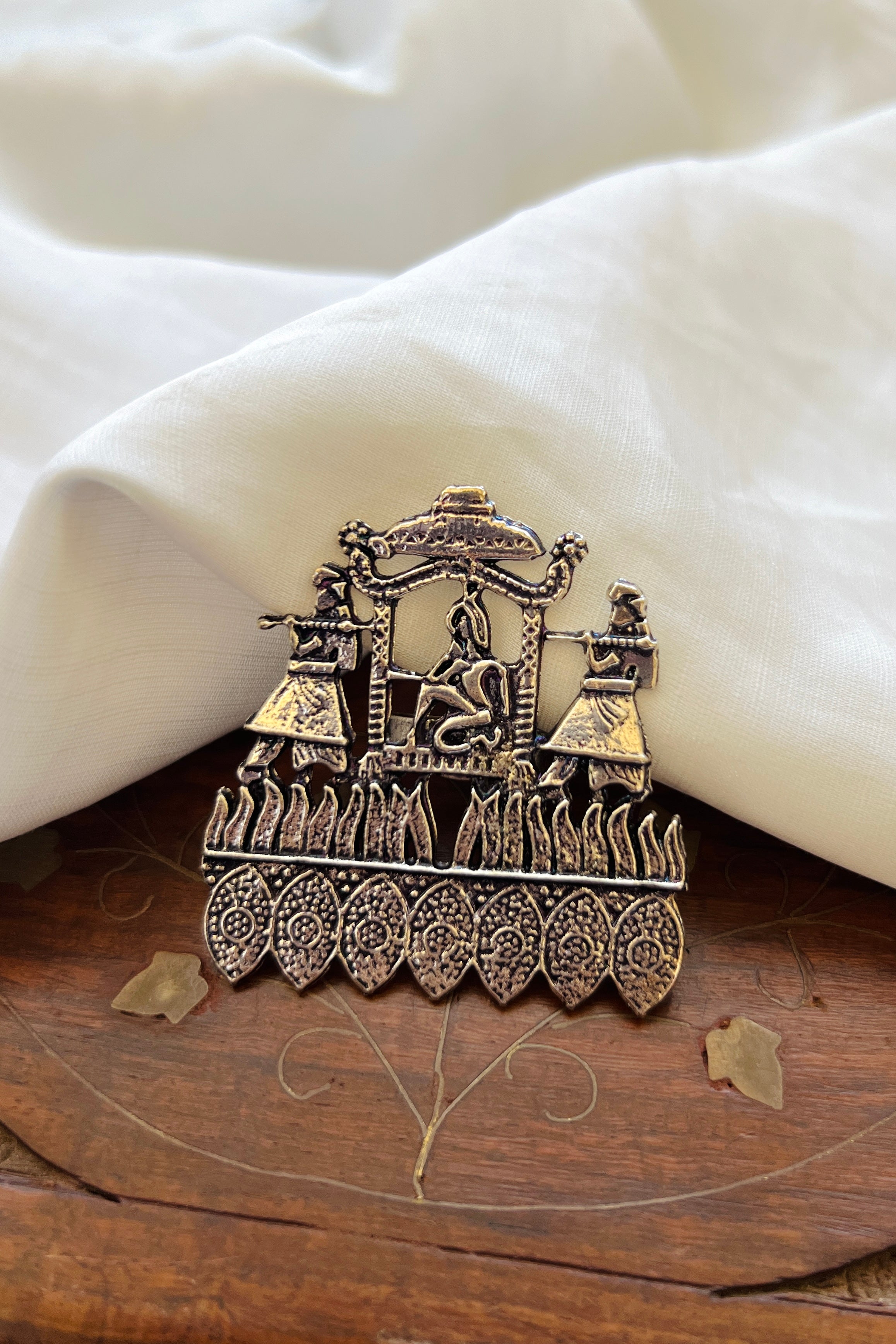 Design: Each detail — from the delicately carved figures to the ornate motifs — reflects exceptional craftsmanship and cultural beauty. Handcrafted in antique silver tones, the design exudes regal charm while remaining lightweight and comfortable for everyday wear. It’s a statement of heritage, elegance, and individuality.